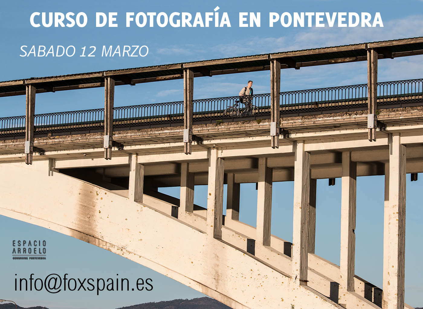 Alguna vez has probado a sacar la cámara réflex que tienes en casa y has pensado: “no se para que tengo ésta cámara tan grande y pesada si siempre hago las fotos en automático”. Si te ha pasado vente el sábado 12 de marzo y dejarás de tener la cámara sub-utilizada, veremos como sacarle el partido que se merece. El curso se impartirá en el Espacio Arroelo (Coworking Pontevedra) ubicado en la calle Michelena, 11. 3º Izquierda A.